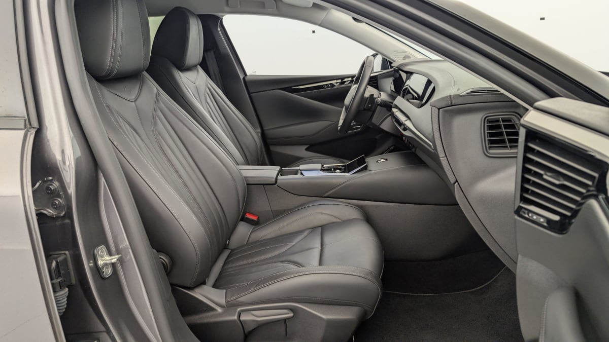 intérieur cuir grainé noir basalte et toile ds : ciel de pavillon clair décors de panneaux de porte chrome guilloché volant en cuir fleur mistral console centrale en toile ds mistral planche de bord en toile ds noir basalte façon écaille panneaux de portes en toile ds noir basalte façon écaille sellerie en cuir grainé noir basalte et toile ds