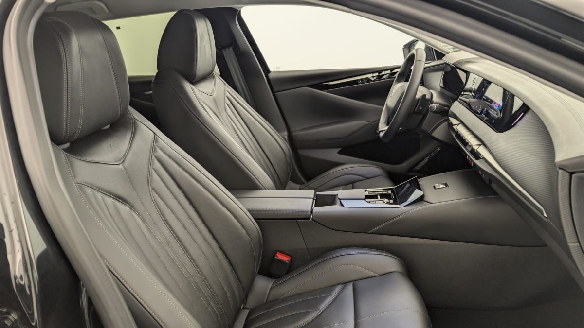 intérieur cuir grainé noir basalte et toile ds : ciel de pavillon clair décors de panneaux de porte chrome guilloché volant en cuir fleur mistral console centrale en toile ds mistral planche de bord en toile ds noir basalte façon écaille panneaux de portes en toile ds noir basalte façon écaille sellerie en cuir grainé noir basalte et toile ds parties centrales des sièges av, partie centrale des sièges latéraux ar et partie av des appuie-tête en cuir. bourrelets latéraux des sièges av, accoudoir central et siège central ar, et parties latérales et ar des appuis tête en toile ds.
