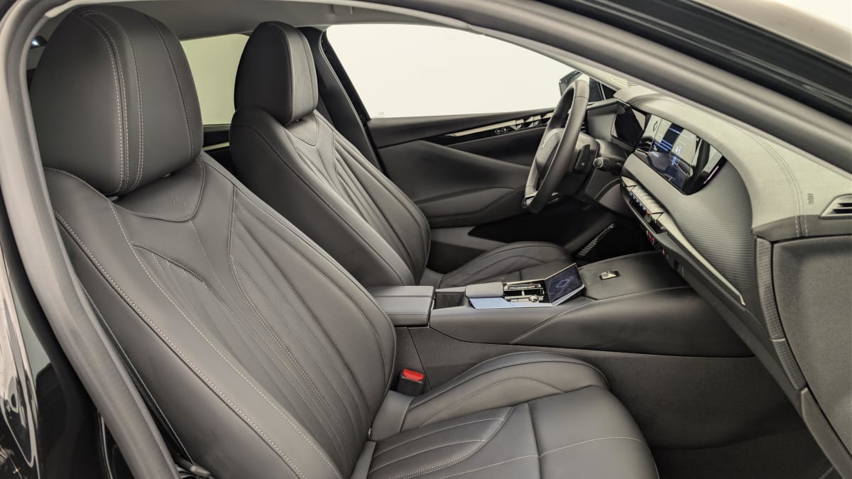 intérieur cuir grainé noir basalte et toile ds : ciel de pavillon clair décors de panneaux de porte chrome guilloché volant en cuir fleur mistral console centrale en toile ds mistral planche de bord en toile ds noir basalte façon écaille panneaux de portes en toile ds noir basalte façon écaille sellerie en cuir grainé noir basalte et toile ds parties centrales des sièges av, partie centrale des sièges latéraux ar et partie av des appuie-tête en cuir. bourrelets latéraux des sièges av, accoudoir central et siège central ar, et parties latérales et ar des appuis tête en toile ds.